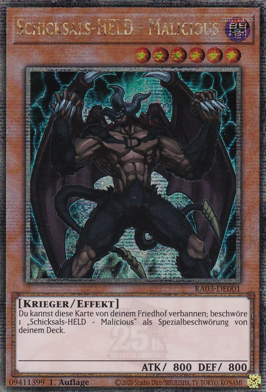 Schicksals-HELD - Malicious - RA03-DE001 - Quarter Century Secret Rare - Deutsch - 1. Auflage - Quarter Century Bonanza